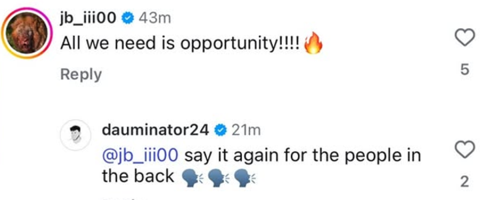 Nakon objave ove partije na Instagramu, u komentarima su se javili Džon Braun i Majk Daum.