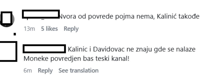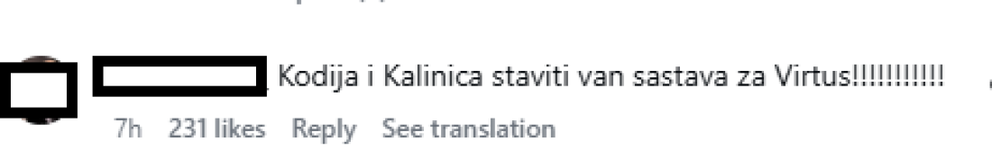 "Kalinić i Davidovac ne znaju gde se nalaze Moneke povređen bas teski kanal", "Nvora od povrede pojma nema, Kalinić takođe", "Nvora je kriminalan", "Nvora bromazepam", "Kalinić nas uništavaaaaa", "Kad ide loše tu je Kalina d bude još gore", "Pored čoveka koji ima 27 poena, Kodi uzima da rešava utakmicu? Bez Izundua poslednjih 3 minuta kad nam treba skok? Davidovac na Blejkniju ?????? Saša šta se dešava?", "Kodija i Kalinica staviti van sastava za Virtus".