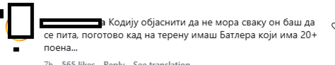 "Čist Obradovićev poraz. Neshvatljivo je da lik drži Izundua na klupi, a ubijaju nas u skoku. Batler sam vukao koliko je mogao, bitno da Kalinića maksimalno drži u igri. A Kodi malo da se spusti na zemlju, ne mora uvek on da rešava, kad se ne sastavlja s igrom".