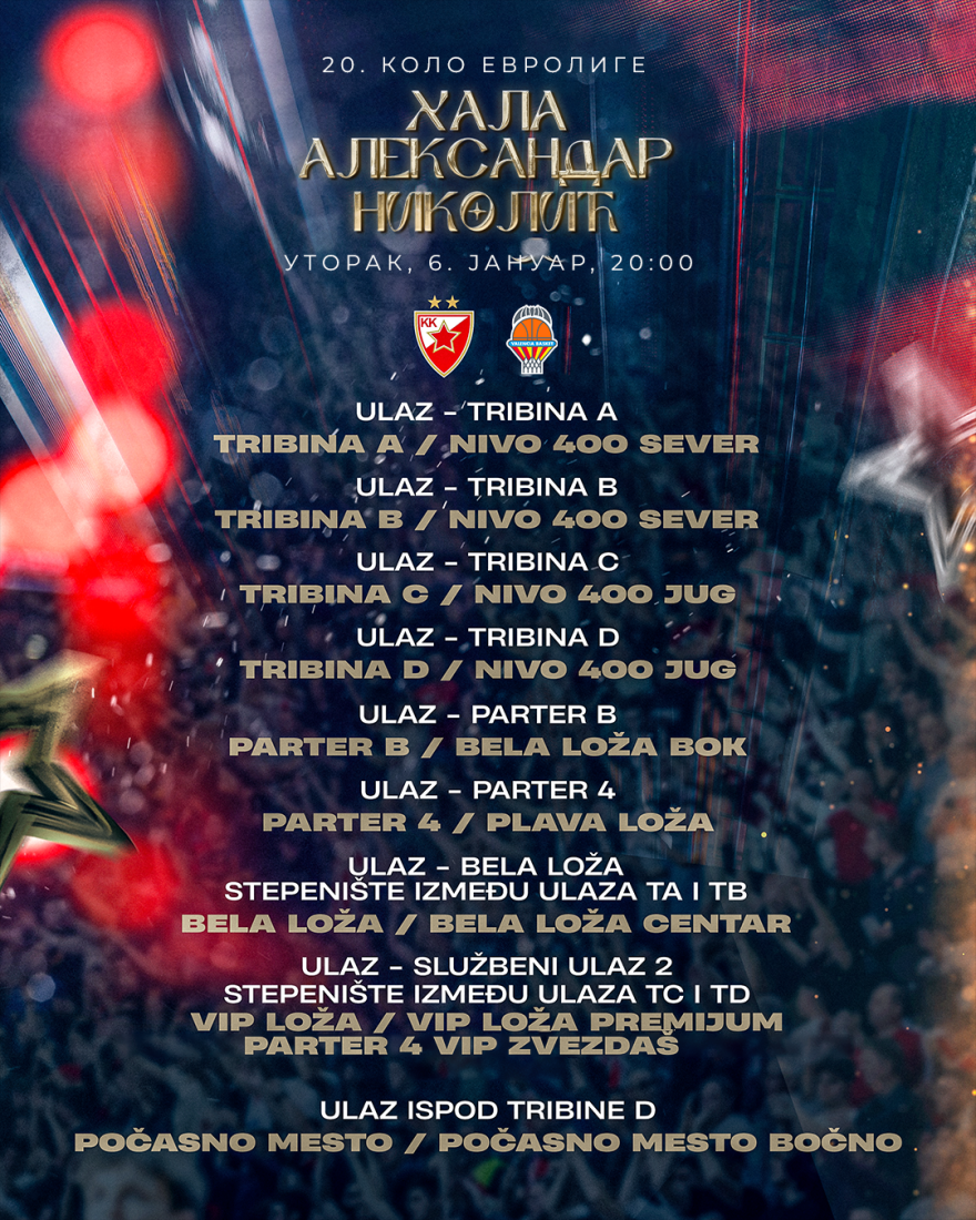 "Crvena Zvezda obaveštava javnost da je prijavljivanje vlasnika sezonskih karata okončano u nedelju u 23.59 časova kao i da će kapacitet dvorane „Pionir“ biti dovoljan da primi sve evidentirane sezonske karte. Svi navijači koji su se prijavili putem ankete na zvaničnom sajtu Kluba mogu da prisustvuju utakmici, dok oni koji nisu prijavljeni neće biti uneti u sistem za predstojeću utakmicu. Zahvaljujemo se svima na razumevanju i pomoći u ovoj situaciji! Klub ovom prilikom želi da uputi apel svim navijačima i zamoli sve koji budu prisutni na utakmici da navijaju fer, sportski i budu prava podrška klubu. Budite posvećeni samo i isključivo podršci crveno-belima u hali, kako bismo svi zajedno izborili pobedu!", objavili su Beograđani na zvaničnom sajtu.