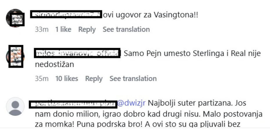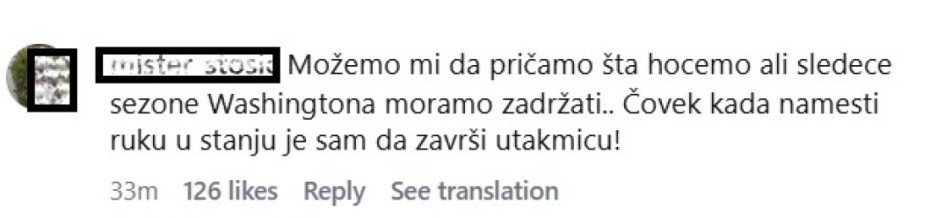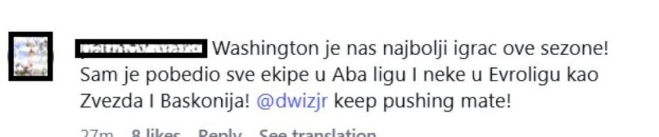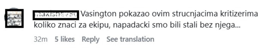 "Vašington je naš najbolji igrač ove sezone! Sam je pobedio sve ekipe u Aba ligu i neke u Evroligu kao Zvezda I Baskonija", "Sta mislite, dal su suigrači sretni sto se Vasington vratio?", "Možemo mi da pričamo šta hoćemo ali sledeće sezone Vašingtona moramo zadržati. Čovek kada namesti ruku u stanju je sam da završi utakmicu", "Novi ugovor za Vasingtona!", "Najbolji suter partizana. Jos nam donio milion, igrao dobro kad drugi nisu. Malo poštovanja za momka! Puna podrška bro! A ovi sto su ga pljuvali bez razloga...", "Vašington pokazao ovim stručnjacima kritizerima koliko znači za ekipu, napadački smo bili stali bez njega...", "Bravo momci, nastavite u istom ritmu. Meljite ih sve! Sami sebi ste dokazali da mozete. Meljite", komentari su navijača na društvenim mrežama.