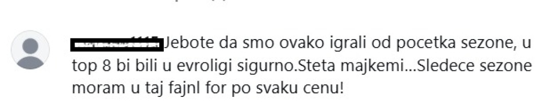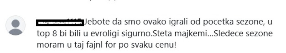 "Jebote da smo ovako igrali od početka sezone, u top 8 bi bili u Evroligi sigurno. Šteta majke mi. Sledeće sezone moram u taj fajnl for po svaku cenu".