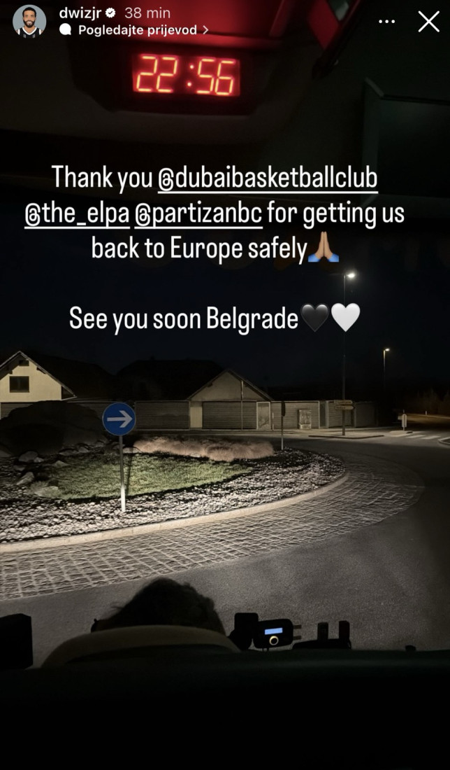 - Hvala KK Dubaiju, ELPA i Partizanu što su nam omogućili da se bezbedno vratimo u Evropu. Beograde vidimo se uskoro - napisao je Vošington na svom Instagram profilu.