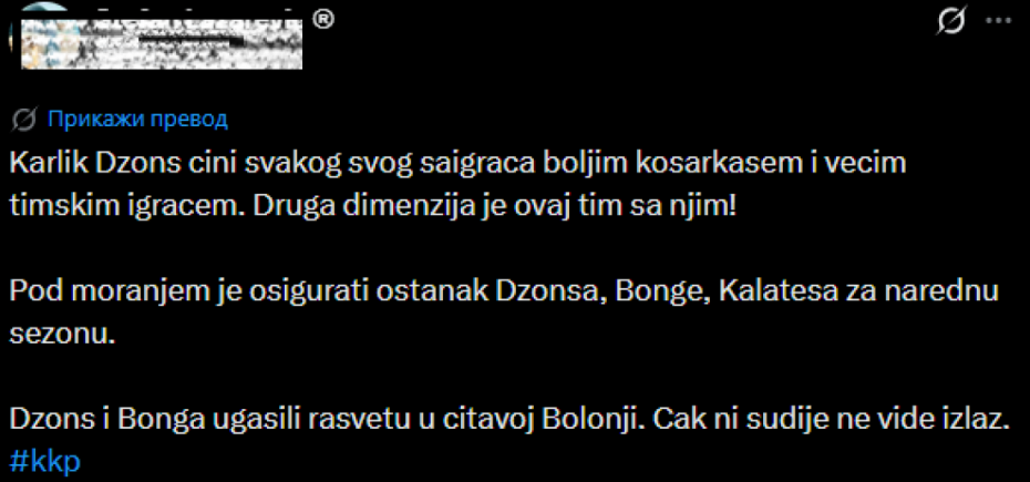 "Karlik Džons čini svakog svog saigrača boljim košarkašem i većim timskim igračem. Druga dimenzija je ovaj tim sa njim! Pod moranjem je osigurati ostanak Dzonsa, Bonge, Kalatesa za narednu sezonu. Dzons i Bonga ugasili rasvetu u citavoj Bolonji. Čak ni sudije ne vide izlaz", "Karlik i Bonga, prioritet svih prioriteta! Uz Kelatesa i Fernanda, od stranaca!", "Karliku i Bongi blanko ugovor", "Isak Bonga zlato ove ekipe", "Fascinantno je to koliko Sterling može da uništi momentum. Ne pamtim većeg teroristu, a imam godina", "Sterling još samo nije šutnuo na svoj koš i ćelavi ne pomišlja da ga zakuca na klupu", Karlik Džons je neverovatan igrač, to je npr čovek kom vredi dati ogroman ugovor i oko njega graditi ekipu, nenormalno koliko utiče na igru", komentari su navijača Partizana na društvenim mrežama.