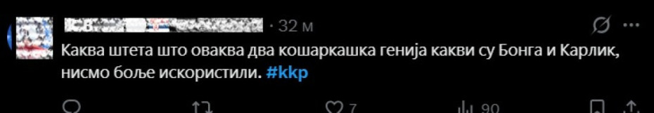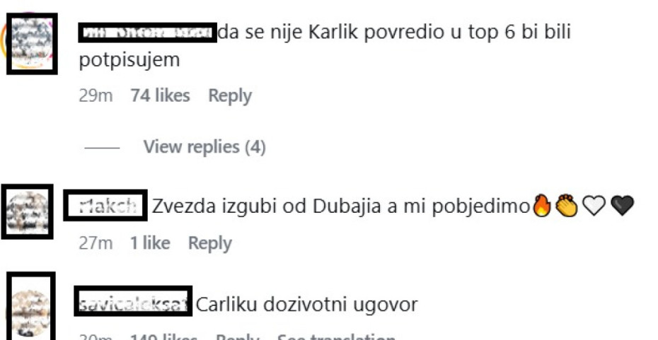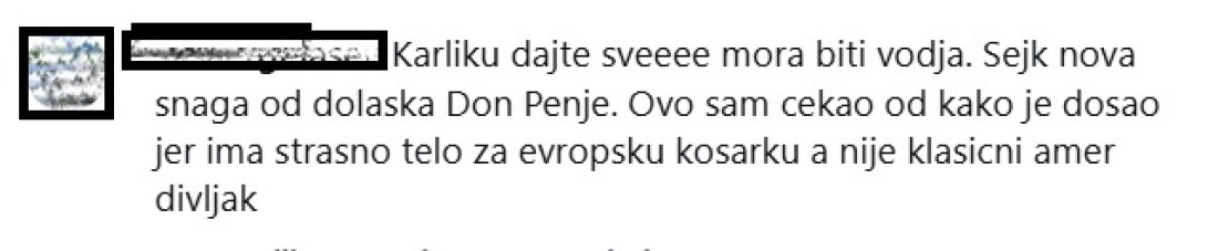 "Da se nije Karlik povredio u top 6 bi bili potpisujem", "Karliku dajte sveeee mora biti vođa. Sejk nova snaga od dolaska Don Penje. Ovo sam cekao od kako je došao jer ima strašno telo za evropsku košarku a nije klasični amer divljak", "Kum nije svestan da mi od njega direktno zavisi psihičko stanje narednih godinu i po dana otprilke".