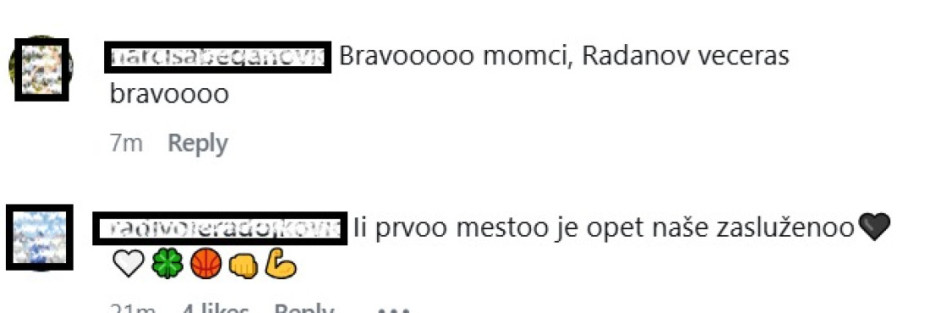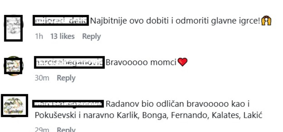 "Bravooooo momci, Radanov večeras bravoooo", "Iii prvoo mestoo je opet naše zasluženoo" , "Najbitnije ovo dobiti i odmoriti glavne igrče!", "Radanov bio odličan bravooooo kao i Pokuševski i naravno Karlik, Bonga, Fernando, Kalates, Lakić", "Moramo odbranu da igramo, Osetkovski, Pokusevski i Milton mora da se čuknu u glavu ako mislimo cigane da dobijemo, ne možemo samo da se oslanjamo na Lakića i Bongu.... Ajde da dobijemo komšinicu, vreme je da ih useremo.... Napred Partizan", komentari su navijača na društvenim mrežama.