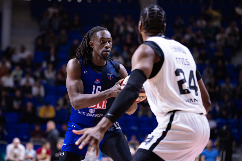 1. minut - Meč u dvorani "Morača" je upravo počeo. Startnu petorku Partizana čine Džons, Milton, Osetkovski, Bonga i Fernando.
