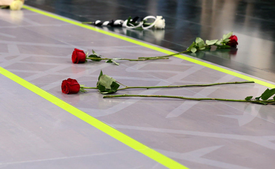 20.35 - Ruže posvećene Duletu preplavile su teren Beogradske arene... Utakmica će kasniti.