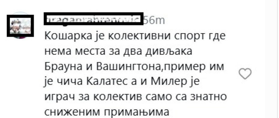"Neka Vašington pakuje stvari. Od kad on ušao ovi su se vratili u utakmicu. Hvala za sve i doviđena", "Jel vam sad jasno sto ne igra Vašington?".