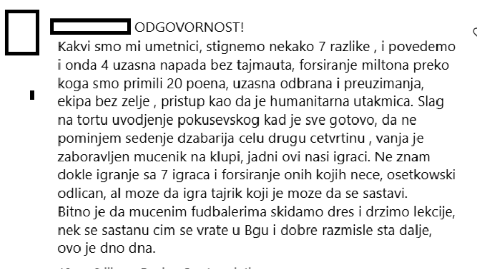 "Ostoja smeni Žoca, pokaži hrabrost, nema nedodirljivih. Igra je raspad sezonama unazad, bez obzira na rezultate".