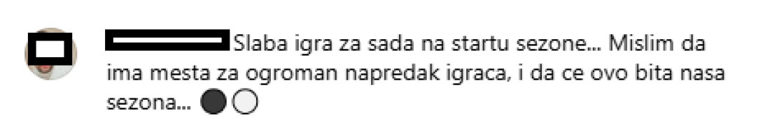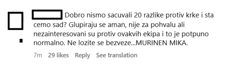 "Slaba igra za sada na startu sezone... Mislim da ima mesta za ogroman napredak igraca, i da ce ovo bita nasa sezona", "Dobro nismo sačuvali 20 razlike protiv Krke i sta cemo sad? Glupiraju se aman, nije za pohvalu ali nezainteresovani su protiv ovakvih ekipa i to je potpuno normalno. Ne ložite se bezveze...MURINEN MIKA", "Mora malo brat Parker da smrša da može da se vrati u odbranu. Koliko je dobar u napadu, toliko je loš u odbrani", "Lagana tekma, delovalo je da je ozbiljno u par navrata, ali mislim da je ovo put.U ABA davati šansu mlađima i probati svakakve varijante", "Evooo nista zlonanerno, ali brate nama Krka u jednom napadu 5 ofanzivnih!! Pa nemoguće da nema jedan 2.15 za odbranu", "Nije mi jasno zašto Žoc ne koristi ceo rooster u ovakvim tekmama. Lakić je lik koji solidno igra a on ga drži na klupi?", komentari su navijača na društvenim mrežama.