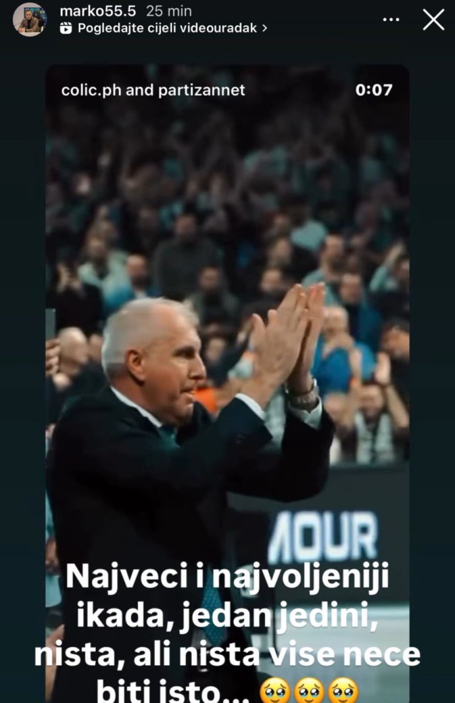 "Najveći i najvoljeniji ikada, jedan jedini, ništa, ali ništa više neće biti isto...", objavio je Jovanović uz tužne emotikone.