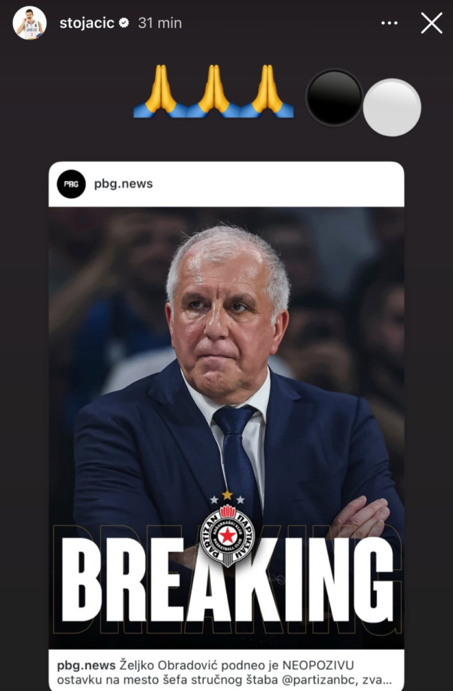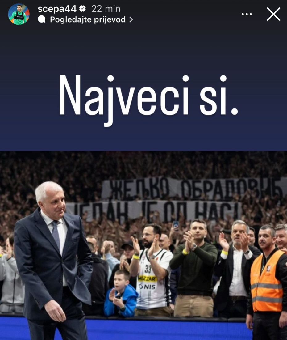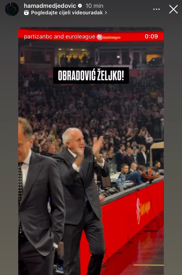 Povodom odlaska Obradovića na Instagramu se oglasio i srpski teniser Hamad Međedović, inače poznat kao veliki navijač Partizana.