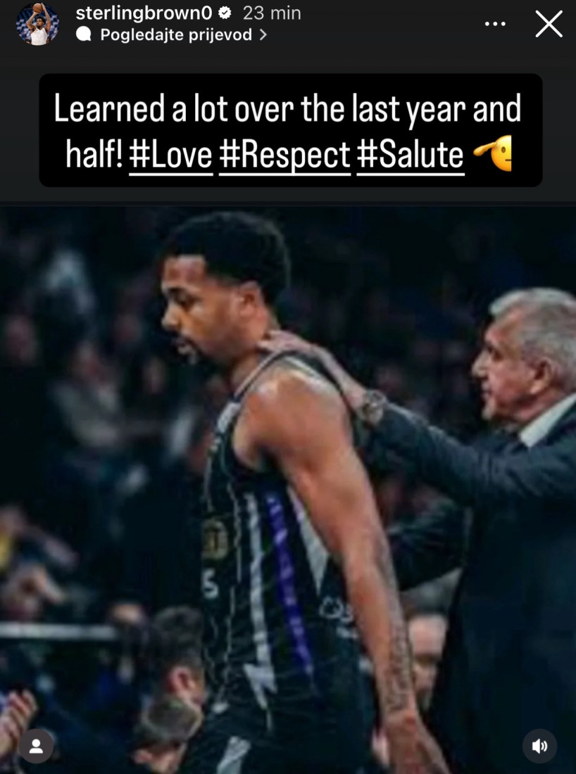 "U poslednjih godinu i po dana naučio sam mnogo! Ljubav, poštovanje, pozdrav", napisao je Sterling uz zajedničku fotografiju sa Žocom.