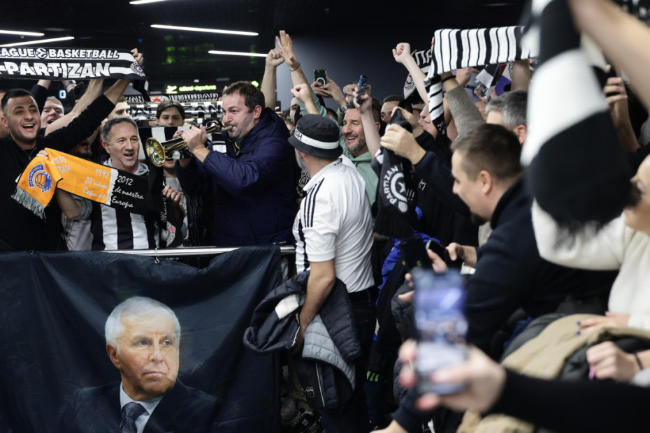 18.29 Željko Obradović je izašao pred navijače Partizana. Orilo se "Željko, ostani", ali i dobro poznate pesme uz trubu i gromoglasno skandiranje.