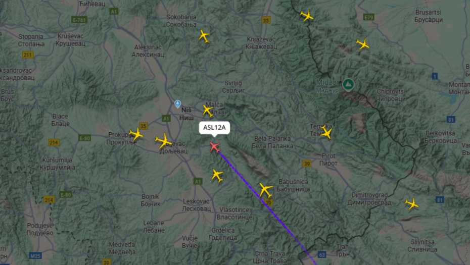 17.34 Željko je ušao u Srbiju, a avion se trenutno nalazi u okolini Niša, prema sajtu "Flightradar24".