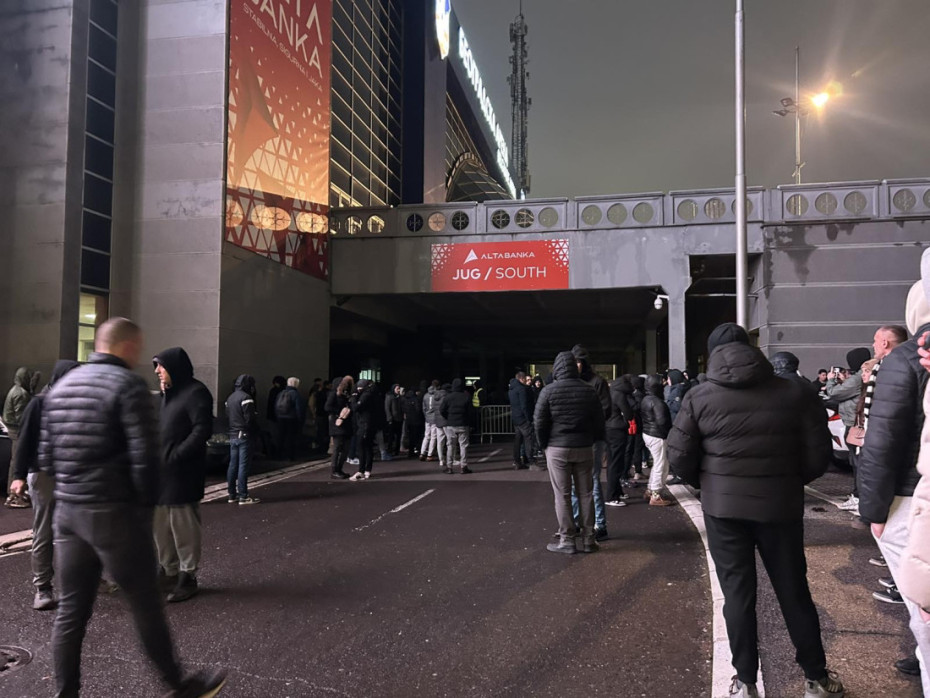 Ispred Beogradske arene okupila se grupa "grobara" koja kliče Žocu. Scene su slične kao u četvrtak kada je Obradović dočekan na aerodromu "Nikola Tesla" po povratku iz Atine.
