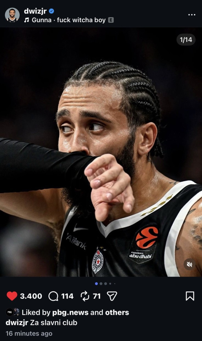 Amerikanac je objavio post na društvenoj mreži Instagram u kojoj je na srpskom jeziku napisao "za slavni klub", što je deo teksta navijačke pesme koja se peva posle pobeda Partizana.