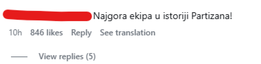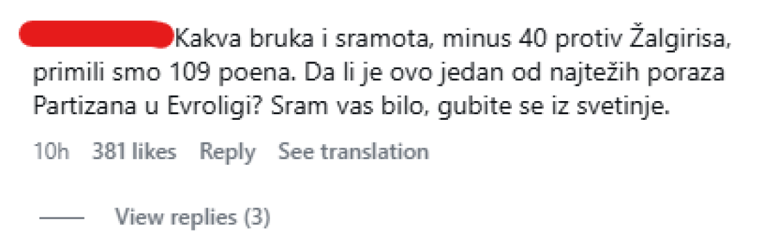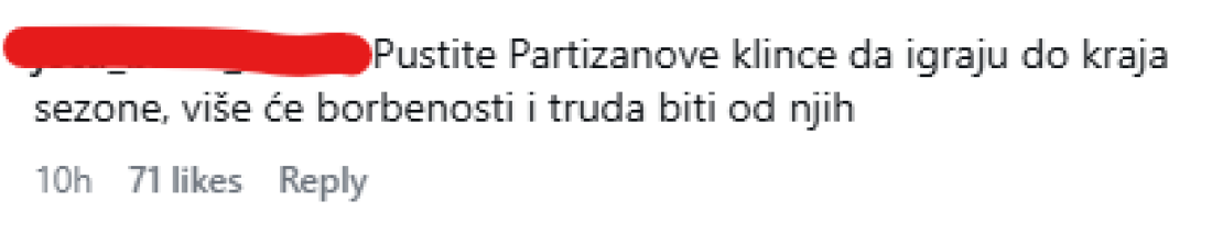 Ispod objave kluba na društvenoj mreži Instagram, pristalice Partizana, iskazale su oštro nezadovoljstvo igrom.