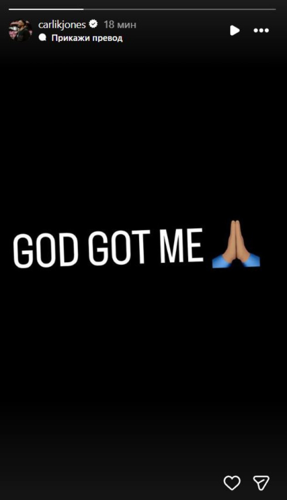 Naime, bivši igrač Dalasa, Denvera, Čikaga i još nekoliko klubova objavio je poruku „God got me“, što u slobodnom prevodu na srpski jezik znači „Bog me čuva“, odnosno „U Božjim sam rukama“. Ova poruka se najčešće koristi kao izraz vere, sigurnosti i poverenja da će sve biti u redu. Možda je jedan od najvažnijih košarkaša Partizana time želeo da poruči da je sa njim sve u redu i da oporavak teče kako treba, a možda je, pak, želeo da pošalje neku drugačiju poruku - ko zna.