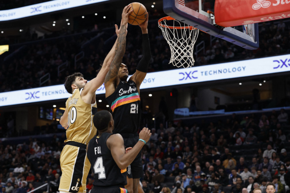 Srpski košarkaš Tristan Vukčević odigrao jednu od najboljih partija sezone u porazu Vašingtona od San Antonio Sparsa 124:113.