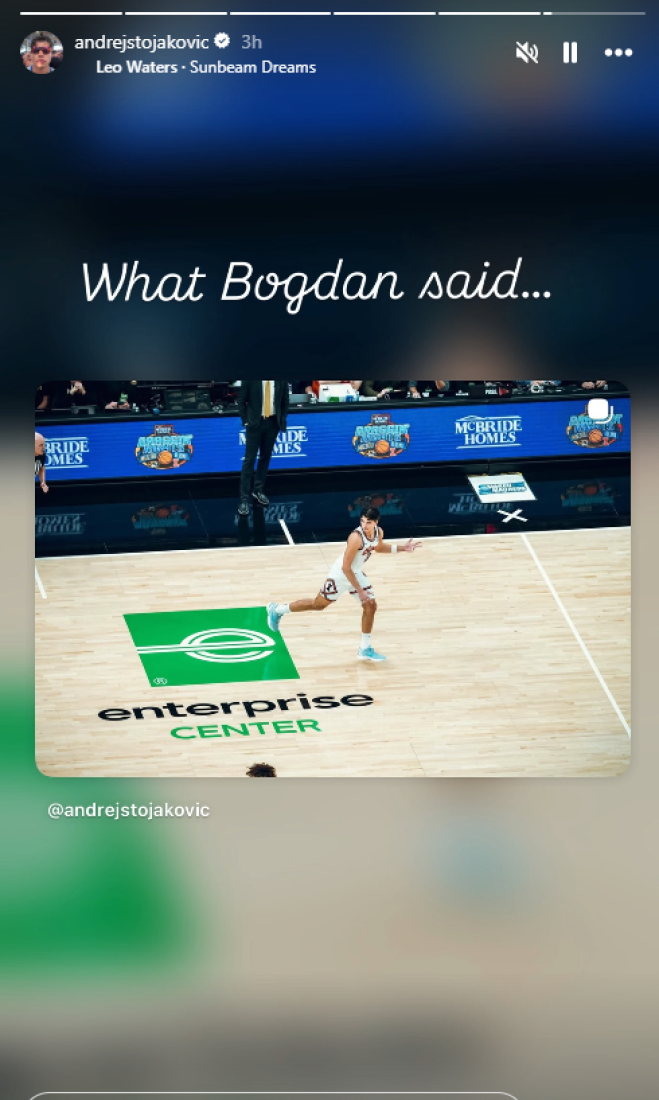 Košarkaš Ilionisa sad je sve oduševio novom objavom na društvenim mrežama. Objavio je fotografiju kapitena Srbije Bogdana Bogdanovića, a onda i svoju fotografiju sa terena na kojoj se vidi kako podiže tri prsta uz komentar