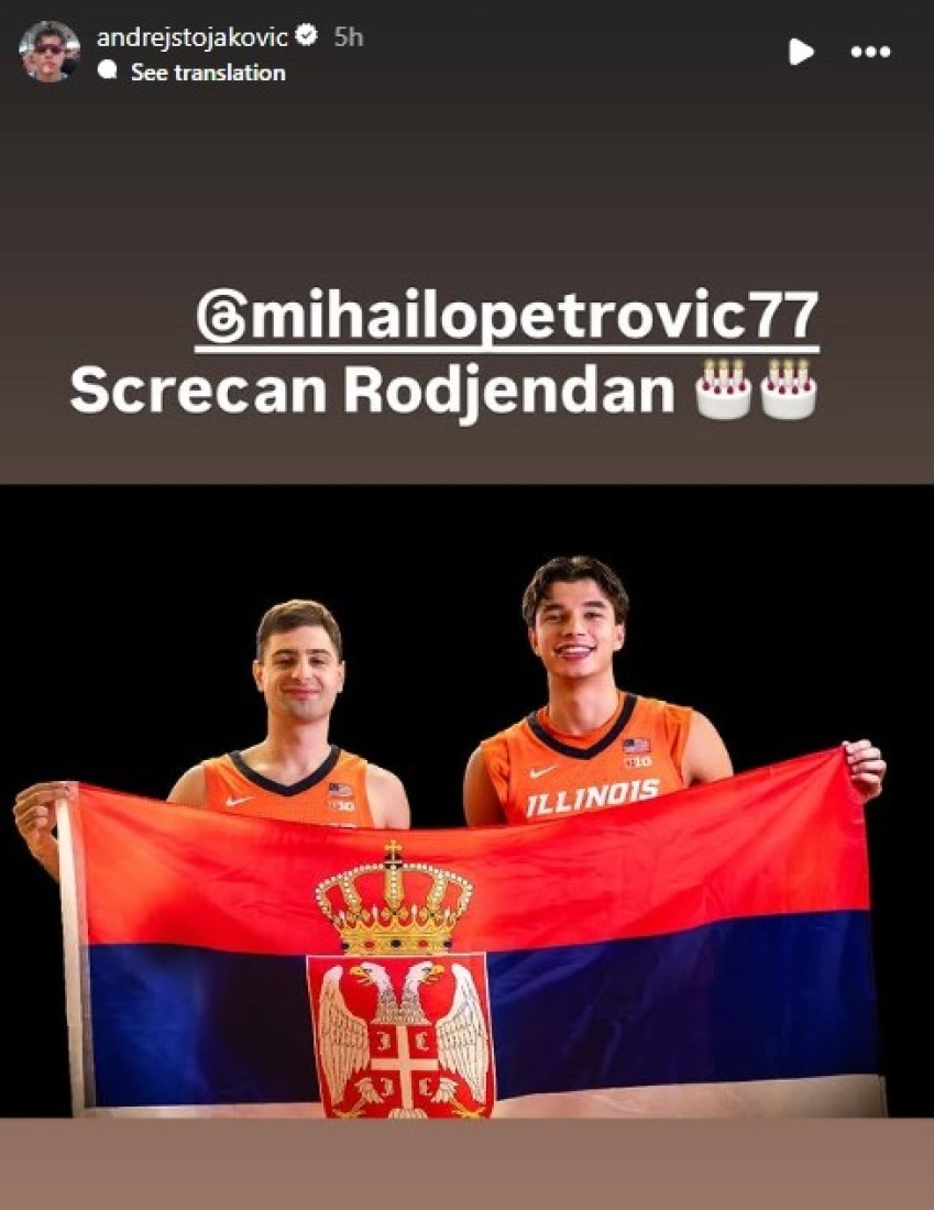 Naime, na svom Instagram nalogu objavio je zajedničku sliku sa saigračem iz Ilionisa Mihailom Petrovićem na kojoj drže srpsku trobojku. Stojaković je na ovaj način želeo da čestita Petroviću rođendan.