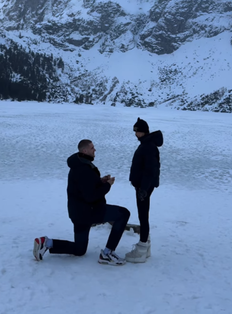 Zaljubljeni par se verio na zaleđenom jezeru Morko oko upoljskim Tatrama. Idilični zimski prizori bili su savršena pozadina za romantičnu prosidbu.