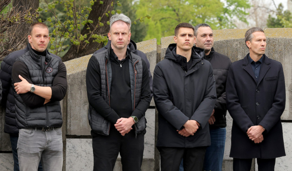 12.30 - Saša Pavlović, Vanja Marinković, Milenko Tepić, Slavko Vraneš i Novica Veličković na sahrani Duška Vujoševića.