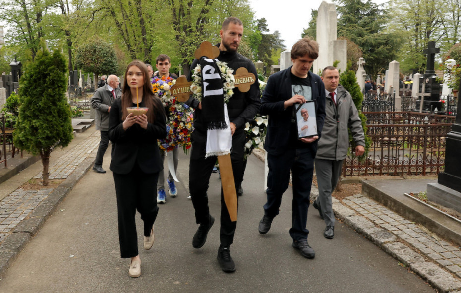 12.00 - Sanduk sa telom Duška Vujoševića ispred kapele na Novom groblju.