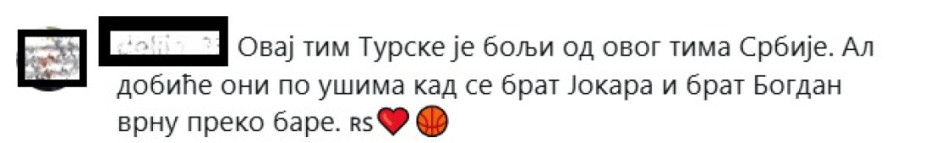 "Bravo na borbenosti, sramota na suđenju", "Sa ovako mladom ekipom rezultat je i više nego odličan", "Treba će mi neko vreme da dođem sebi", "Suđenje loše, a igra još gora…", "Bravo momci", "Nista bez Jokića i Bogdanovića", komentari su navijača posle poraza Srbije.