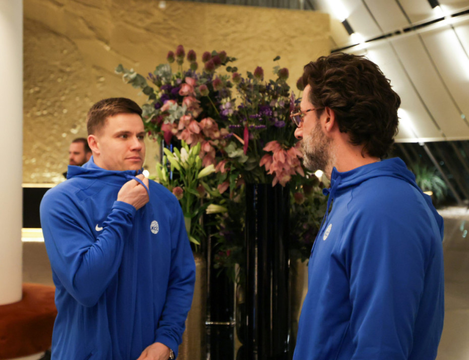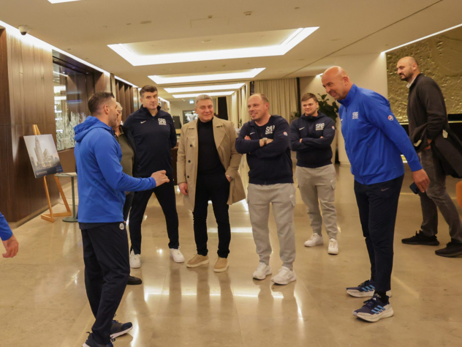 Selektor "orlova", njegov stručni štab i reprezentativci dočekani su u hotelu "Kraun Plaza" od strane predsednika Košarkaškog saveza Srbije Nebojše Čovića i potpredsednika za mušku košarku Nenada Krstića.