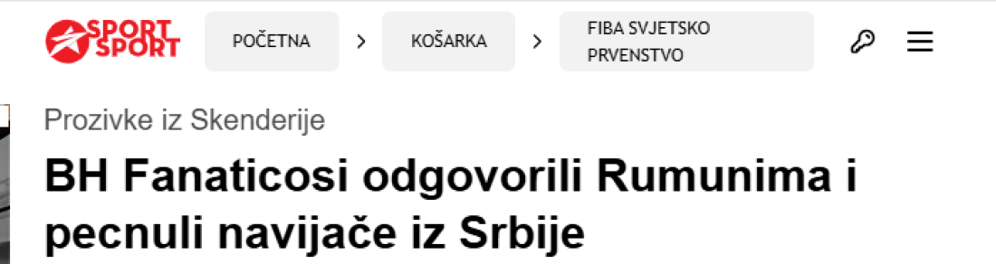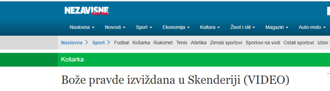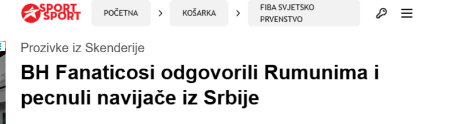 "Košarkaši reprezentacije Srbije igraju protiv BiH u Sarajevu u drugom kolu kvalifikacija za Svetsko prvenstvo, a igrače je dočekala veoma neugodna atmosfera pre samog početka meča. Naime, srpski igrači su dočekani zvižducima, a publika u Skenderiji je izviždala i himnu "Bože prave", te je uvredljivo skandirala".