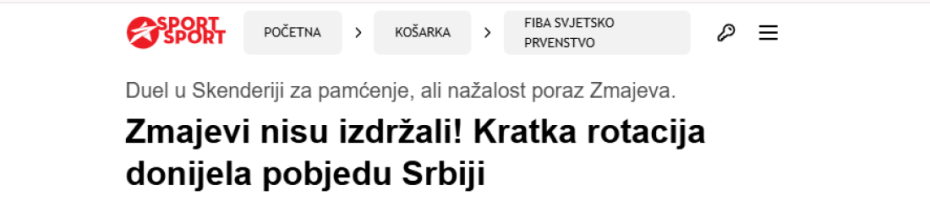 Portal "SportSport.ba" piše: "Zmajevi nisu izdržali! Kratka rotacija donijela pobedu Srbiji", dok su u posebnom tekstu naveli kako su navijači "bocnuli Srbiju".