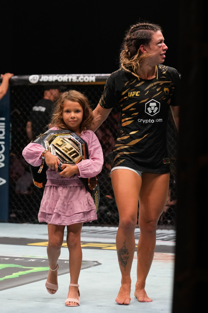 Lice joj je bilo potpuno deformisano. Ipak, nema sumnje da je pojas zalečio sve rane, kao i ćerkica kada se posle pobede pojavila u oktagonu.