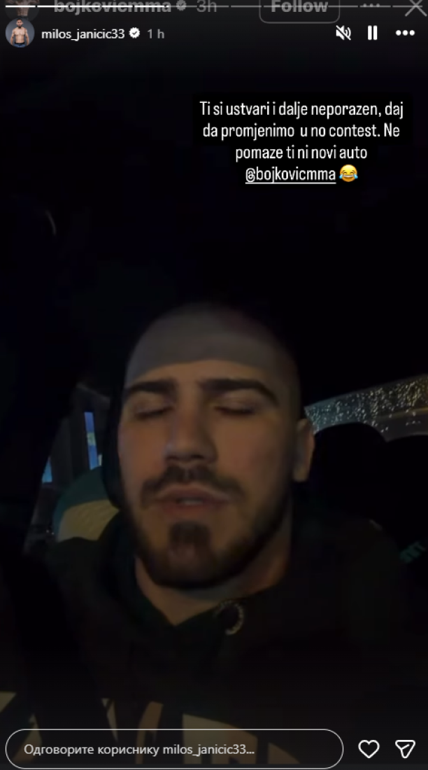 Naime, nakon klipa u kom Bojković proziva Janičića zbog čega želi da radi borbu sa Donovanom Desmaeom, crnogorski borac se oglasio na "Instagramu" i odgovorio mu.