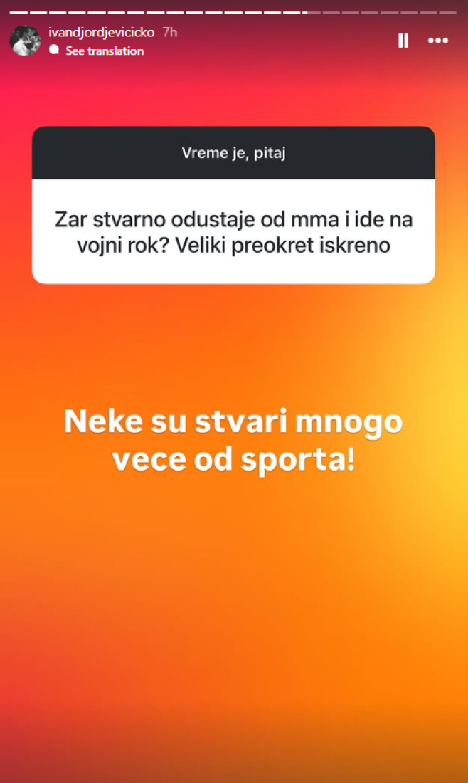 Ðorđević je odgovarao na pitanja fanova na Instagramu, pa je posle jednog šokirao ceo borilački sve, jer je najavio povlačanje iz MMA, što niko nije očekivao.