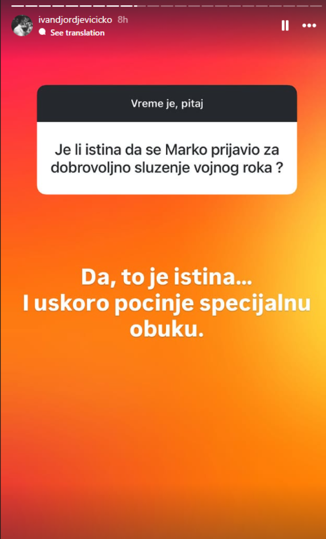 Potom je usledilo pitanje da li je istina da se Marko prijavio za dobrovoljno služenje vojnog roka.