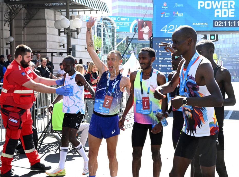 Etiopljani imaju razlog za slavlje, jer je u muškoj konkurenciji slavio Gudeta Gada Gemsisa, koji je postavio novi rekord staze - 02:09:11. Drugo mesto osvojio je Makedonac Dario Ivanovski (02:09:35), koji je prava senzacija maratona u Beogradu, a treći je bio Kenijac Johana Erot (02:09:55).