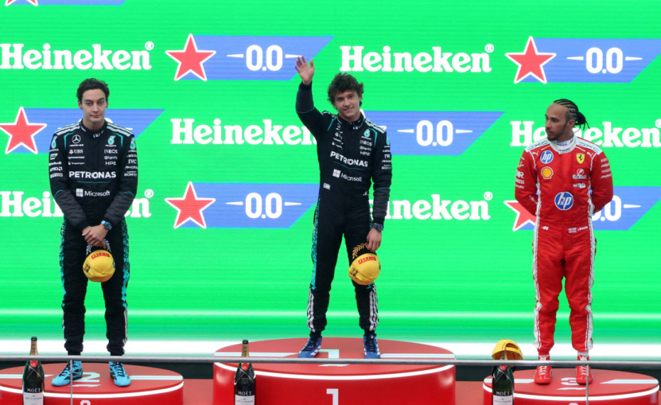 Italijanski vozač završio je trku ispred timskog kolege Džordža Rasela, koji je pre sedam dana slavio u Australiji, a na podijumu je bi i Luis Hamilton, vozač Ferarija.