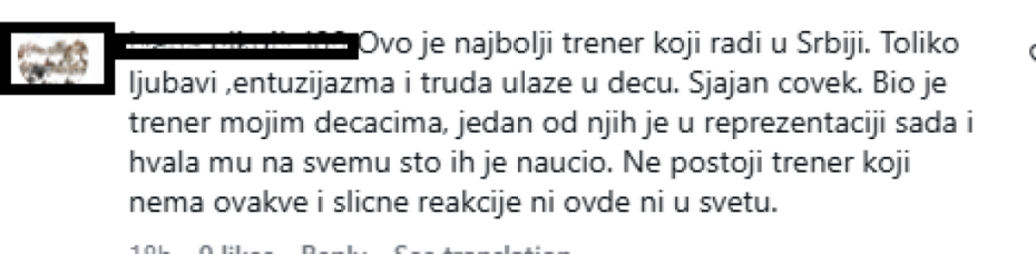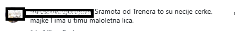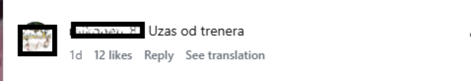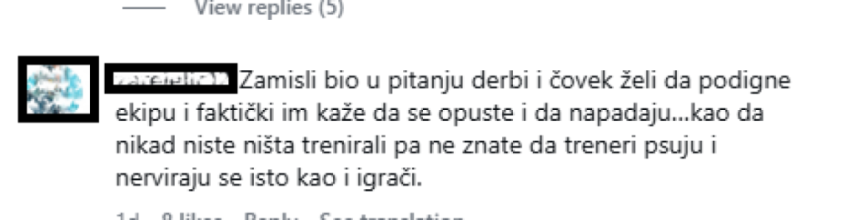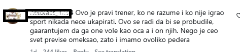 "Užas od trenera", "Indijanaca puna kuca", "Kakvo drustvo u kojem radi, takav i vokabular. Indijanac", " Nažalost ove uplašene devojke će prihvatiti ovakvo ponašanje kao normalno i tako će kroz život trpeti i druge muškarce da se naovakav način ponašaju prema njima", "Sramota od trenera to su nečije ćerke, majke i ima u timu maloletna lica", "Ko je njemu dao licencu".