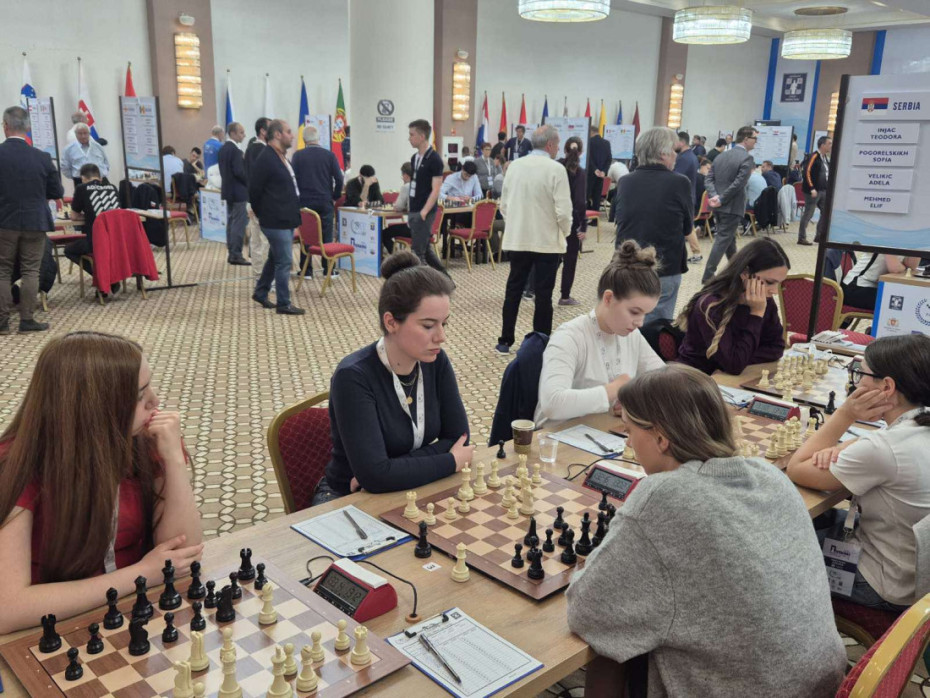 Kada je reč o šahistkinjama, one su ostvarile nerešen rezultat protiv selekcije Gruzije - 2:2. Efektan napad na belog kralja sprovela je Elif Mehmed i primorala protivnicu na predaju. Adela Velikic je od pocetka bila bolja i izgledalo je da će tu osvojiti poen i pobedu u meču.