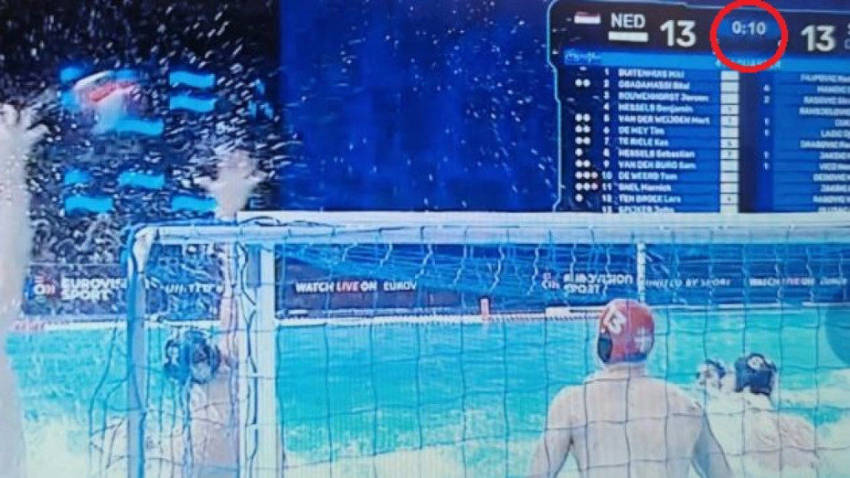 Na snimku sata za merenje napada vidi se da je u trenutku šuta lopta i dalje bila u ruci holandskog igrača, dok je na tom satu već stajalo 0.0, što znači da je vreme isteklo.