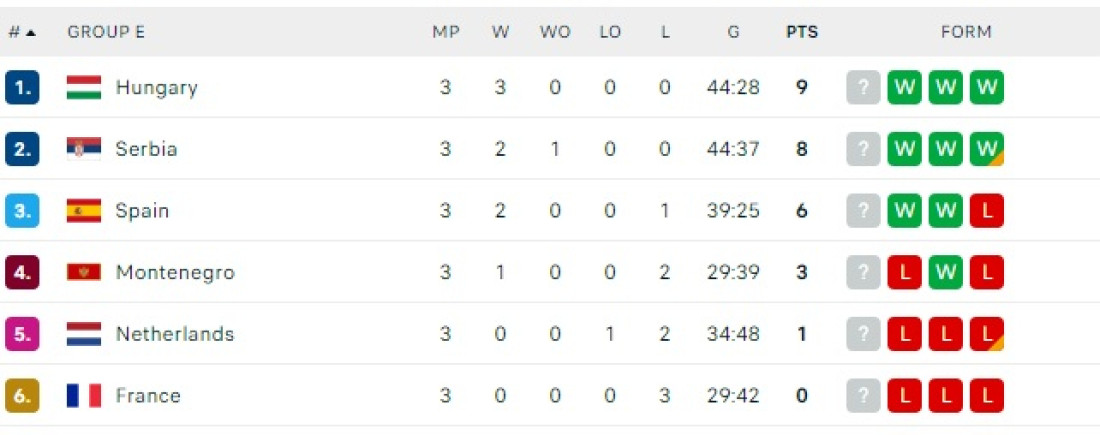 Mađari su nešto ranije savladali Holandiju sa 16:11 i tako ostali na maksimalnom učinku, te na tabeli novoformirane grupe E imaju maksimalnih devet bodova. Sa druge strane, Srbija je na drugom mestu sa osam bodova, dok je treća Španija sa šest. Otprilike to su tri selekcije koje će voditi bitku za prvo i drugo mesto, odnosno za plasman u polufinale Evropskog prvenstva.