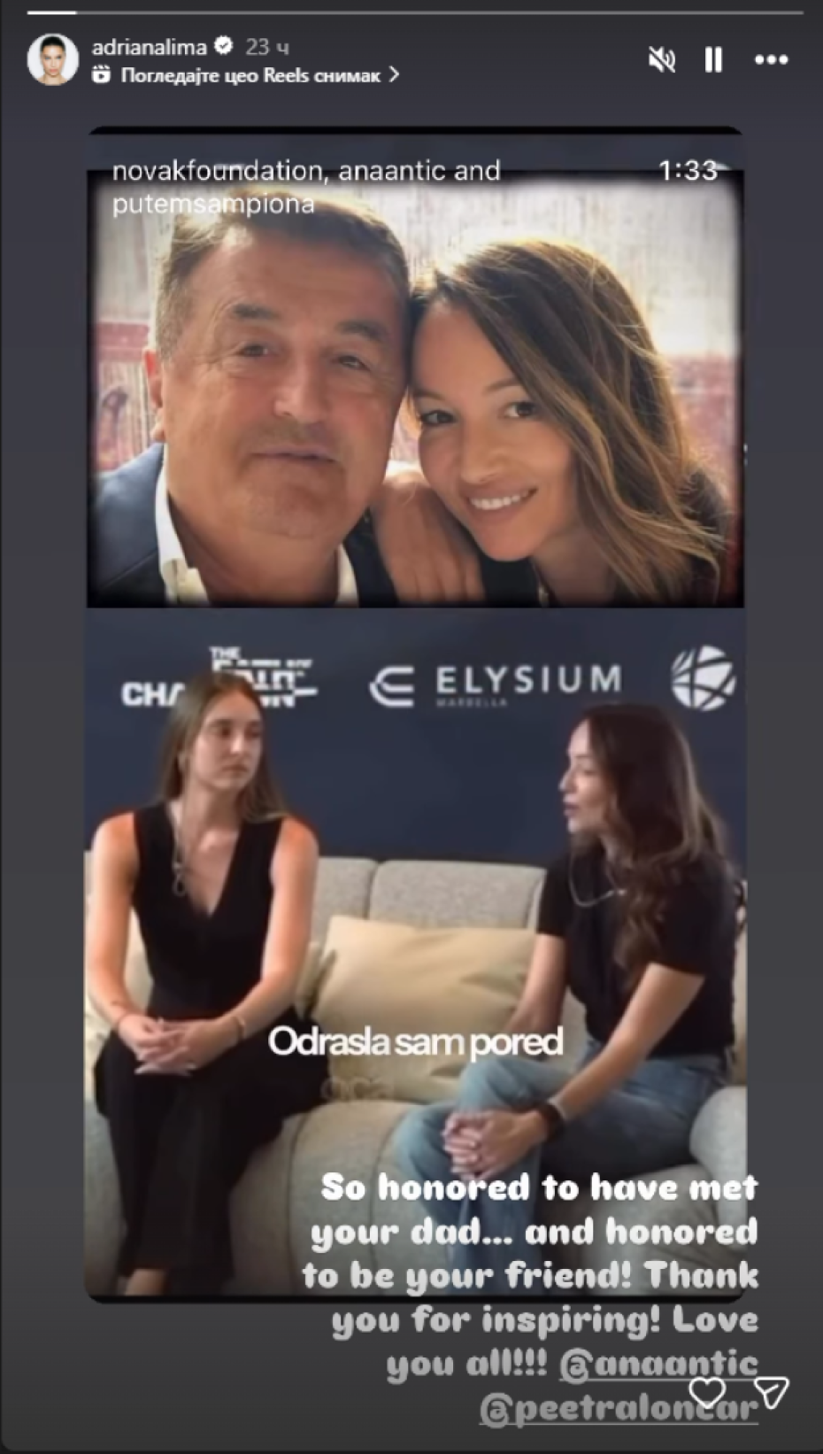 Lima i Ana godinama su nerazdvojne, uprkos tome što žive na različitim stranama sveta - Ana u Španiji, a Adrijana u Sjedinjenim Državama. Njihovo prijateljstvo traje uprkos daljinama, a gotovo svaka njihova zajednička fotografija privuče veliku pažnju javnosti.