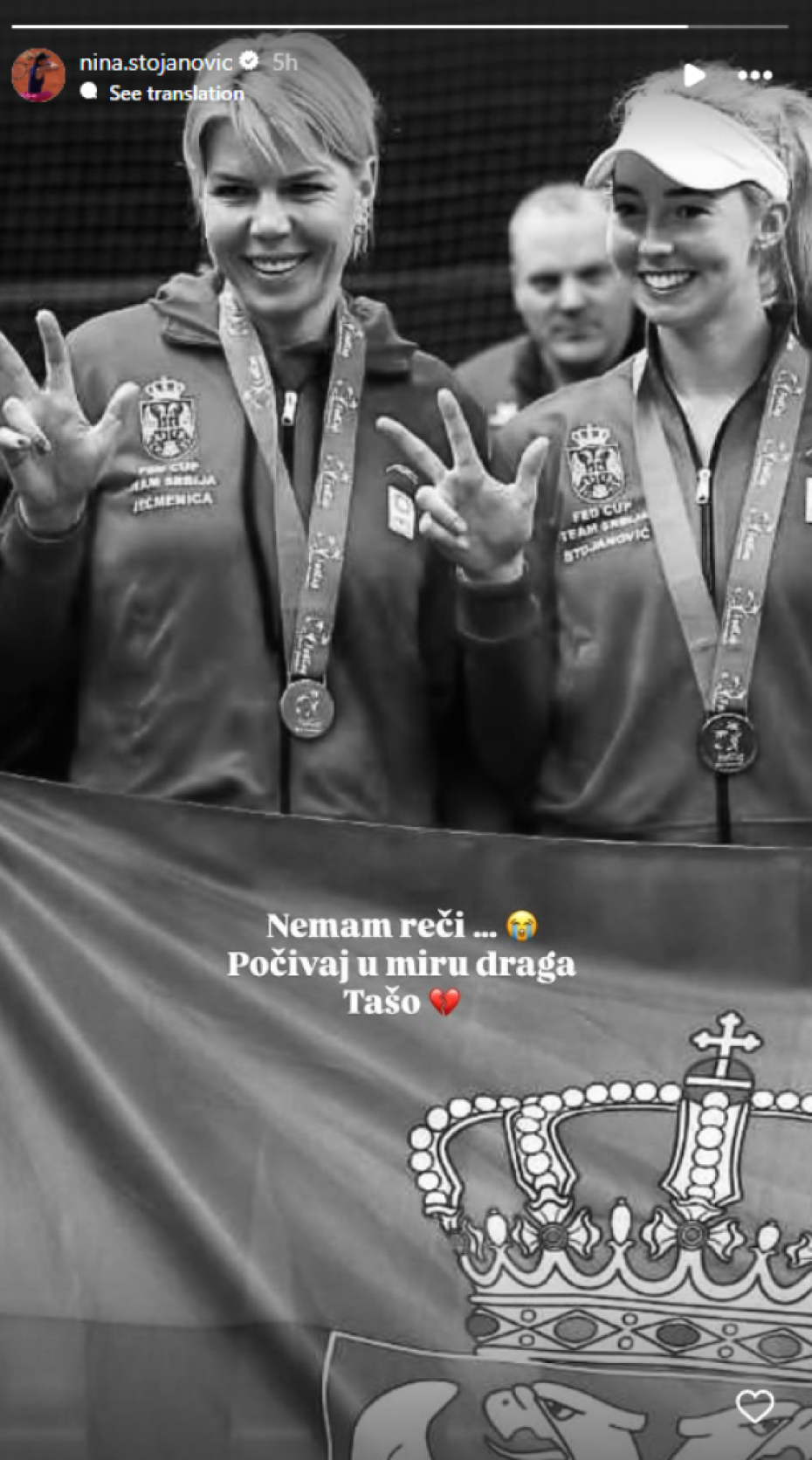 „Nemam reči… Počivaj u miru, draga Tašo“, napisala je Stojanovićeva u opisu njihove zajedničke fotografije na svom "Instagram" profilu.