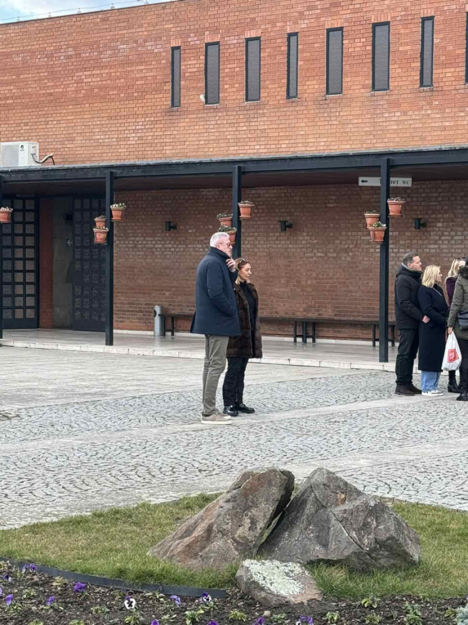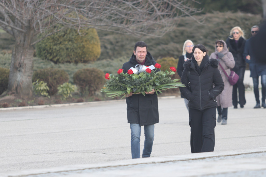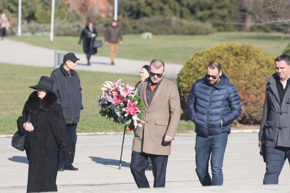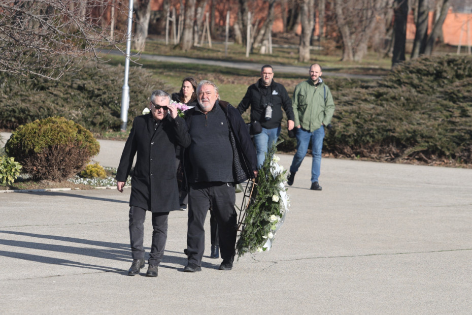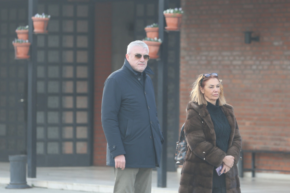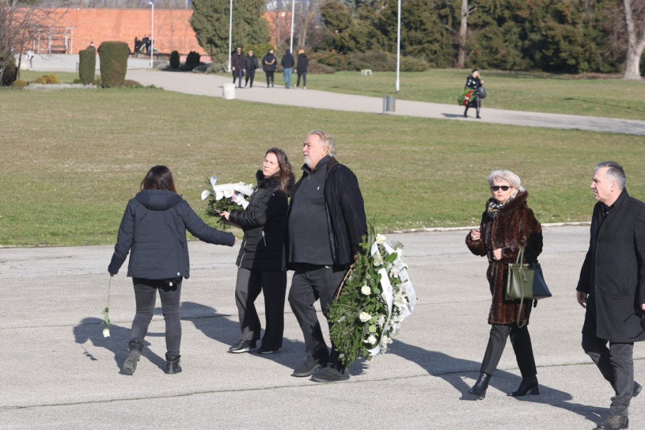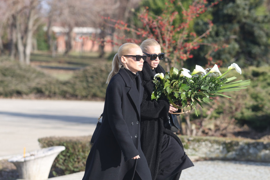 14.49 - Vidno potresen Boba Živojinović je stigao na groblje, nosi ogroman venac od belih ruža: "Poslednji pozdrav Taši od porodice Živojinović", piše na vencu.