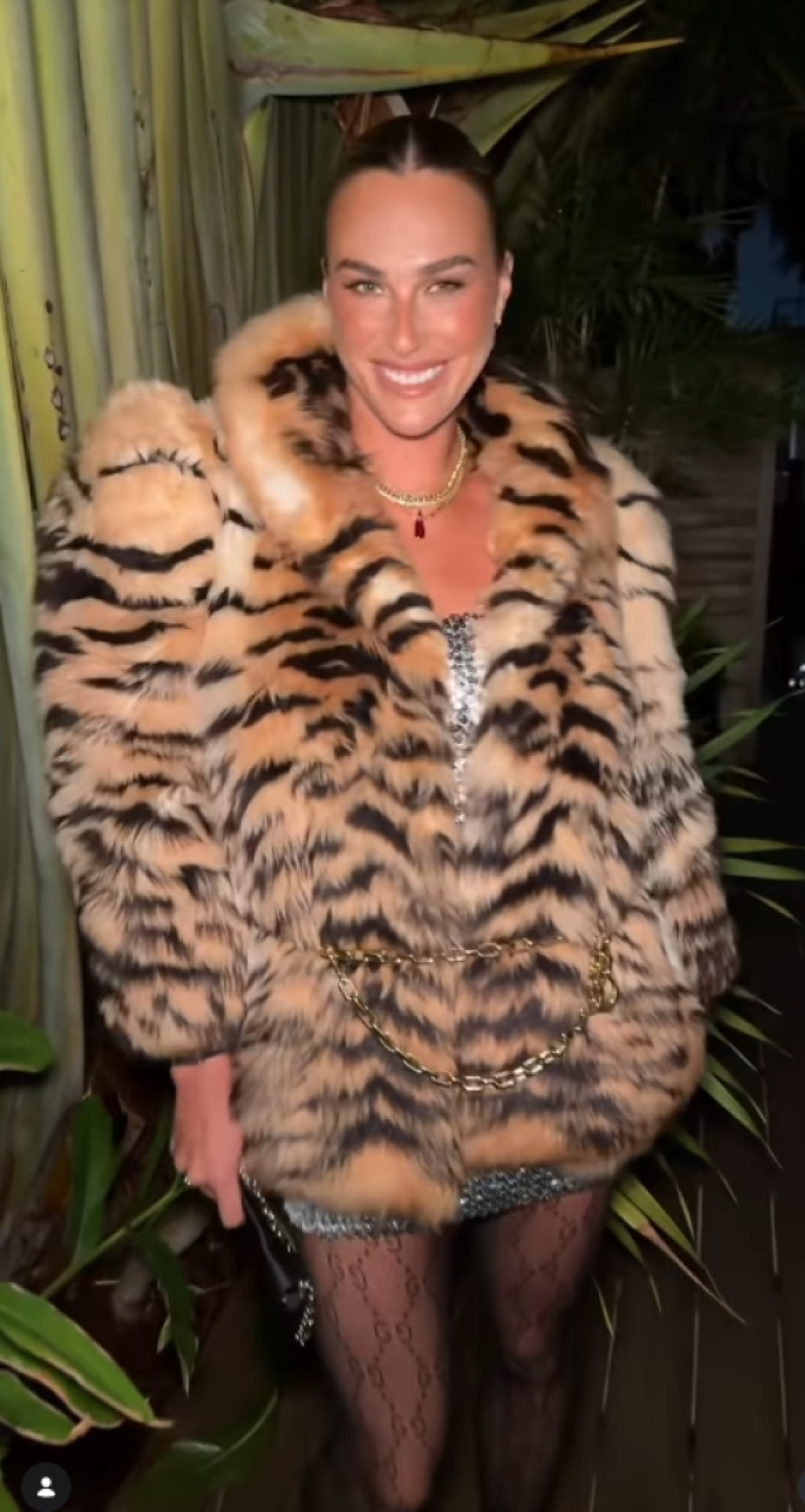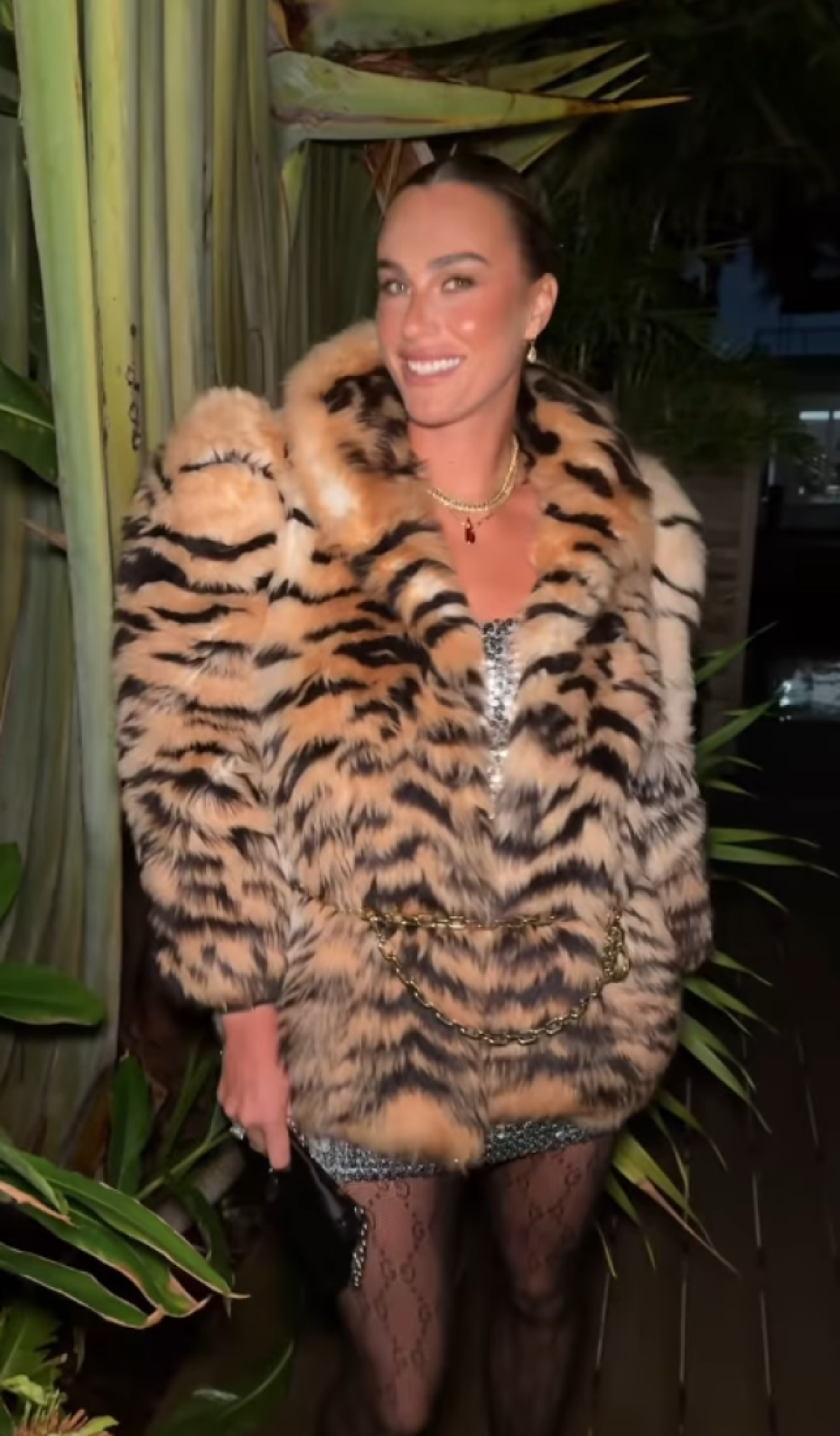 Ali, ima vremena malo da se provede, pa je uhvaćena u noćnom izlasku. Međutim, njen stajling je u centru pažnje i glavna tema na društvenim mrežama. Ponovo je objavila snimak koji je "srušio" internet. Arina je pozirala u čipkastim čarapama, sjajnoj haljini sa šljokicama i dekoltom, ali i u bundi s uzorkom tigra.