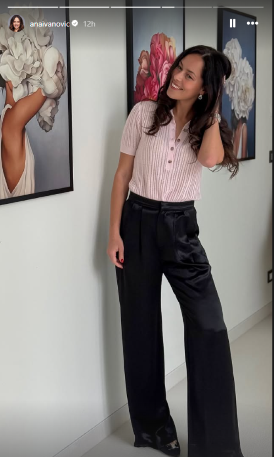 Ana Ivanović je blistala u ležernom, ali i elegantnom izdanju. Crnim širokim pantalonama i roze uskoj majici. Kao i uvek njena duga duga kosa je bila u prvom planu, dok je Ana bila samo suptilno našminkana.