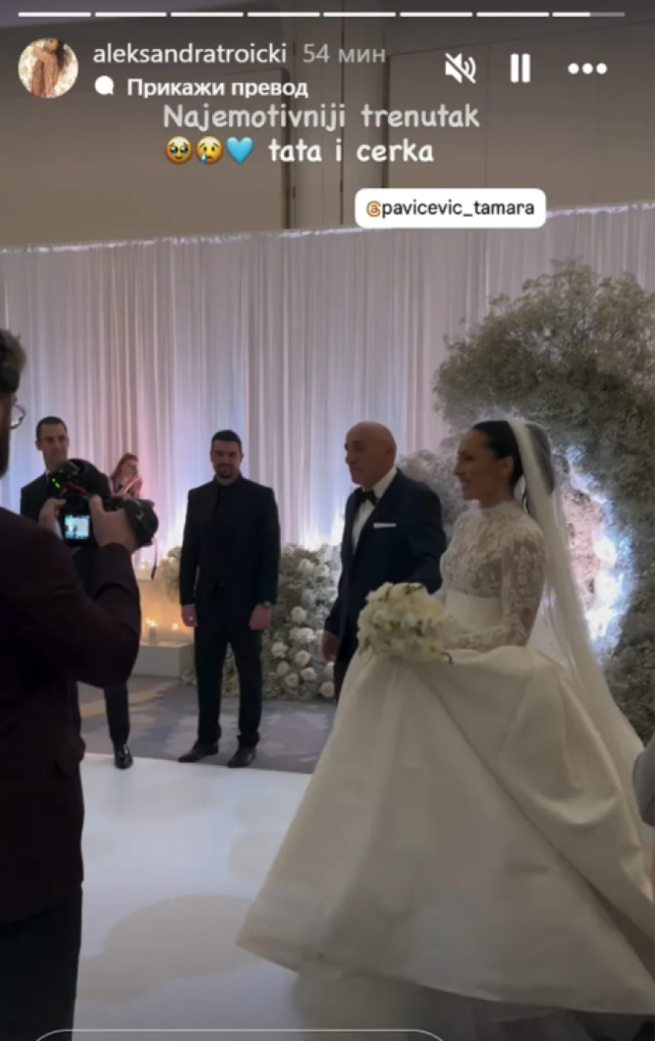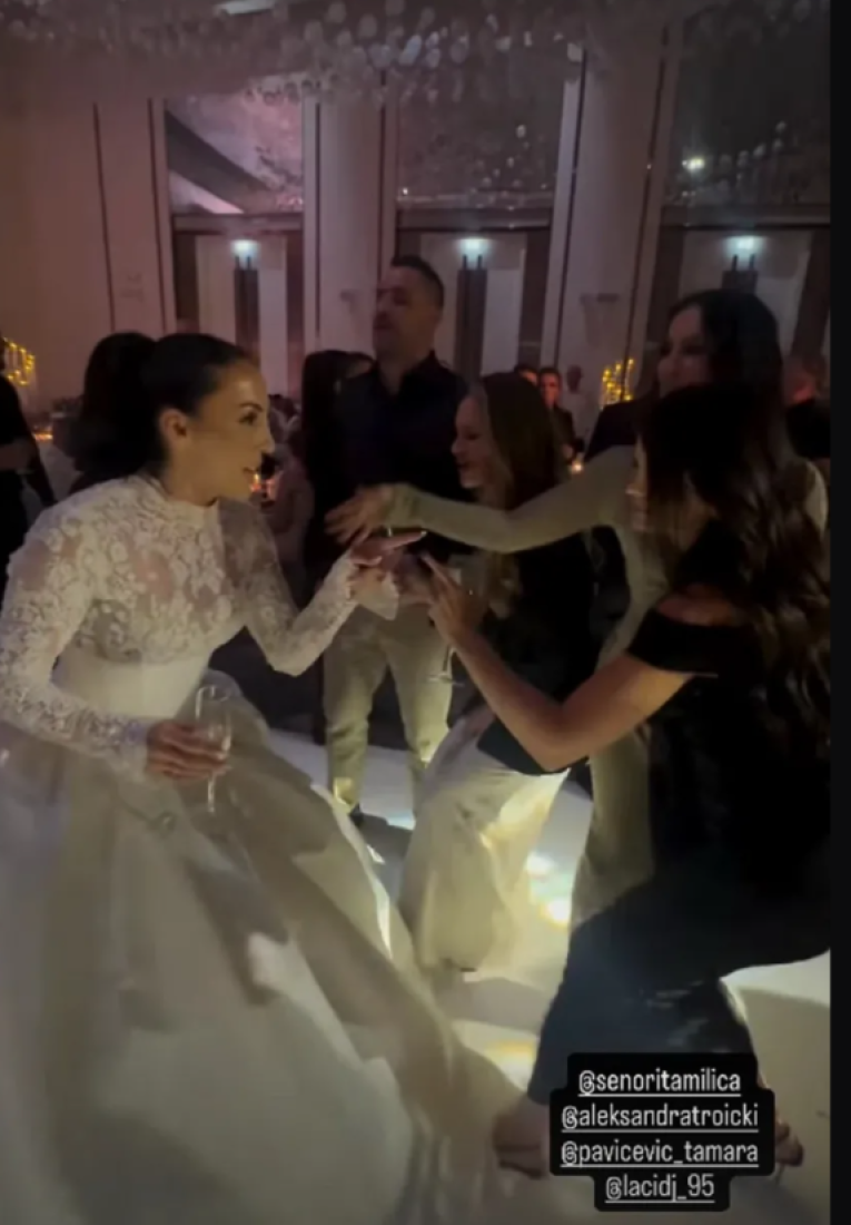 Na svadbi je pevala Milica Pavlović, a Aleksandra Troicki je objavila snimak na kom se vidi prelepa mlada Tamara u raskošnoj venčanici, ona i pevačica.